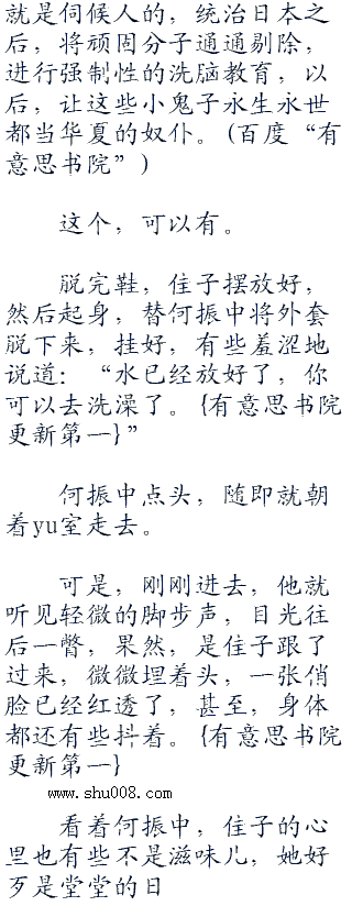 何振中站在房门出,从她的背后望去,她已经盘起了发丝,露出了优美如诗的颈项、光滑的香肩以及大片的雪背肌肤。他的目光,继续顺着她腰间那优雅的弧线往下看,睡衣的下摆长度,堪堪只是盖到了她的臀下处,那小小的,纯白的小内内若隐若现。