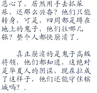 只有一个鬼子中将受了伤,什么都没吃,什么都没喝,还好好的,可是,他也已经快死了,是被臭气熏死的,只要吸一口,就全是屎尿的味道,特别是,看着周围的人蹲在那里,哗哗哗的黄色屎尿不断地飞溅,他胃里也是一阵翻涌,转身就吐了,可是,身后也蹲了一排的人在那儿拉。