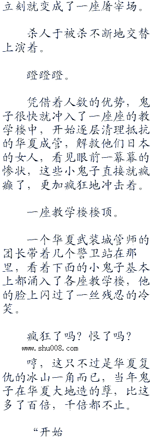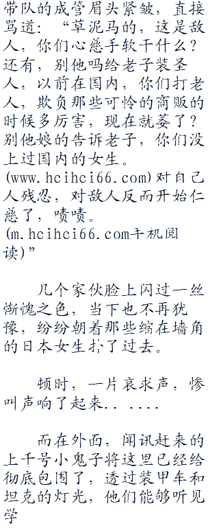 不少鬼子的眼睛立刻就红了,他吗的,那些该死的华夏人竟然抓了这么多日本女人,他们能够想到,女人落入敌人手中,那会是一种什么样的后果。