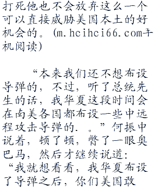 “好,就算你华夏要在南美地区驻军,但是,你们必须保证不能布设中远程攻击导弹。”奥巴马退让了一步,因为他知道,这些该死的华夏人是无论如何也不会放过进入南美地区这个机会的,换了是他,
