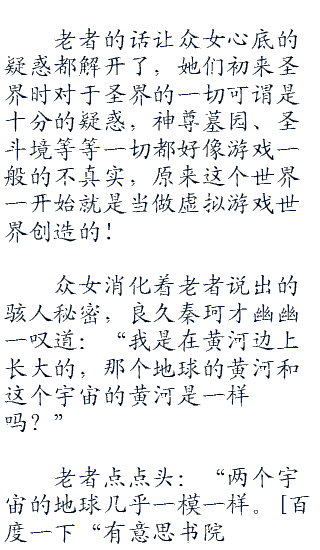 那白发老者看了一眼失魂落魄的几女,叹气地道:“我知道你们不太愿意接受这事情,但是这一切,都是真实的,你所经历的一切,都是真实的,但是这个世界,却是创立出来的一个虚的世界,当然,如今这个世界本身经历了无数亿年,也可以当成是一个真实的世界了,只是对于那真实的世界来说,这一个世界可以说是并不存在的。”