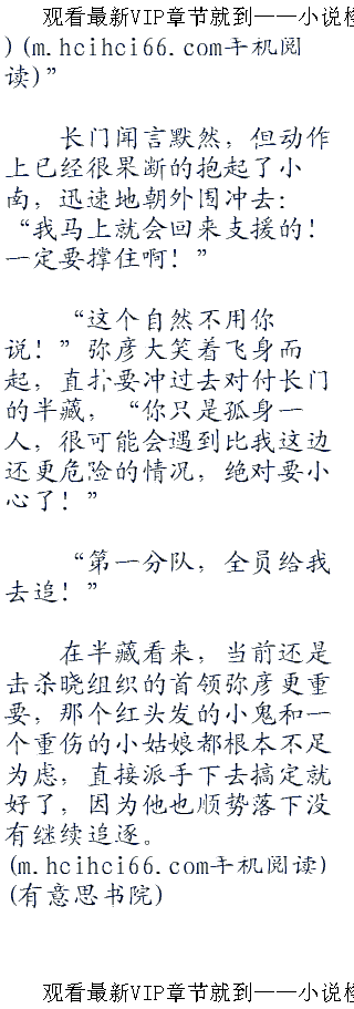 “哼,尽喜欢玩些小聪明!”半藏面容凶恶的挥手大喝道,“仅凭你们两个又能做什么!反而还带着一个重伤的拖累!全部都给我上,杀了他们!”