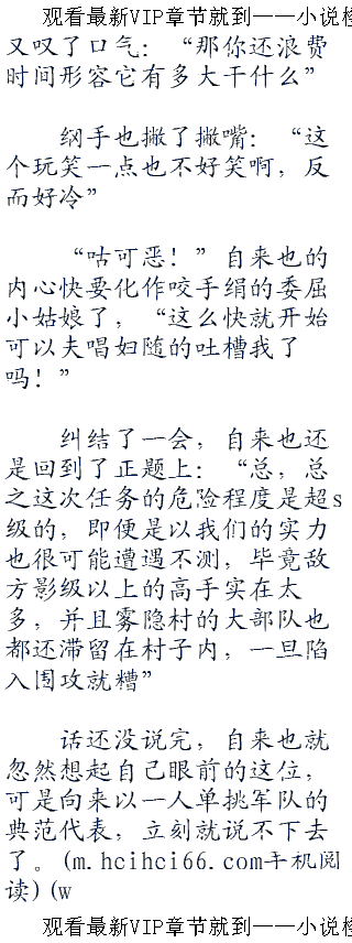随后自来也马上有些恼火起来或者说是既羡慕又恼火:“我说你为什么要带纲手一起去啊?纲手她患有恐血症,无法战斗你不知道吗?”