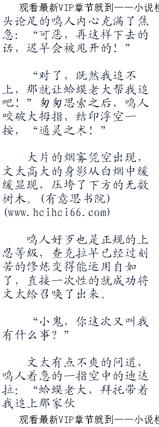鸣人和小樱正是在这些树木间上下跳跃,拼命的追赶着远处空中那愈来愈小的大鸟。