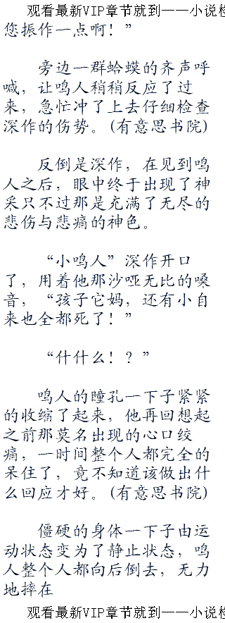 在骚乱的中心处,正躺着一具浑身流脓起泡的小小身影,它一动也不动,双眼无神的看向天空,仿佛精神已经死去了一般。在见到那熟悉的样子之后,鸣人的脑中顿时变得一片空白。
