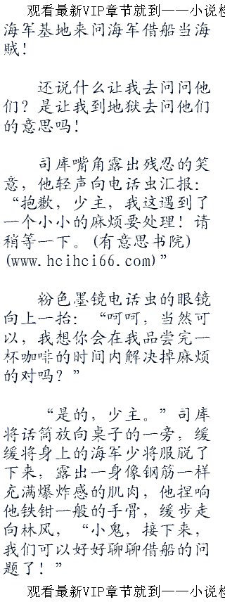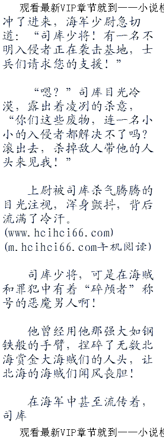 海军少将,北海基地的负责人“司库”的声音因兴奋而轻微的颤抖起来:“少主,这是我的荣幸,是我梦寐以求的结局!”