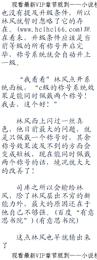 突然间,系统的下一条提示音又出现了:“检测到玩家已经顺利开启所有称号的d级,称号系统升级·c级!”