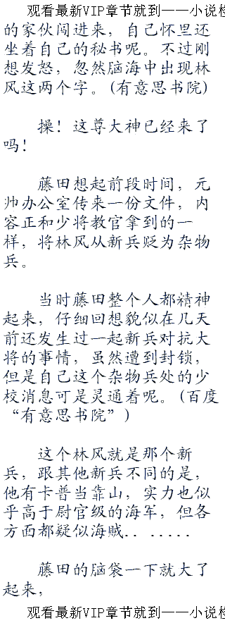 “你不需要训练!”教官接着说道,“你现在已经不是新兵了,现在归入杂物兵里,马上去藤田少校那里报道。”
