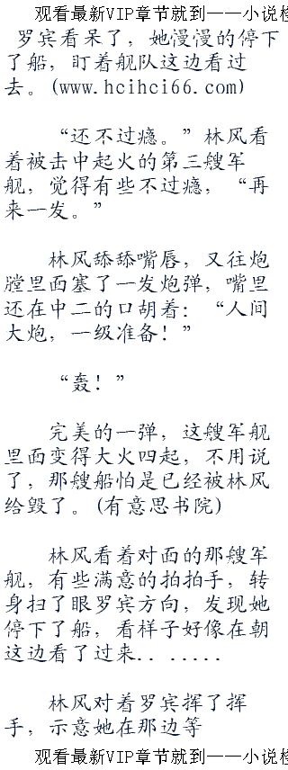 还没有张开嘴的少校被从中间斩断,而这艘军舰,也被这一划给斩成了两半,慢慢的沉到海里,甲板上的水兵们一个没站稳,都掉到海里面,大呼救命。