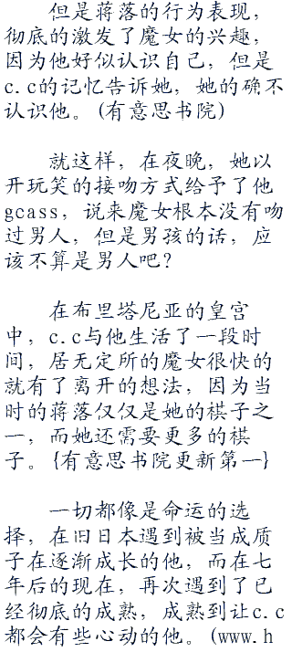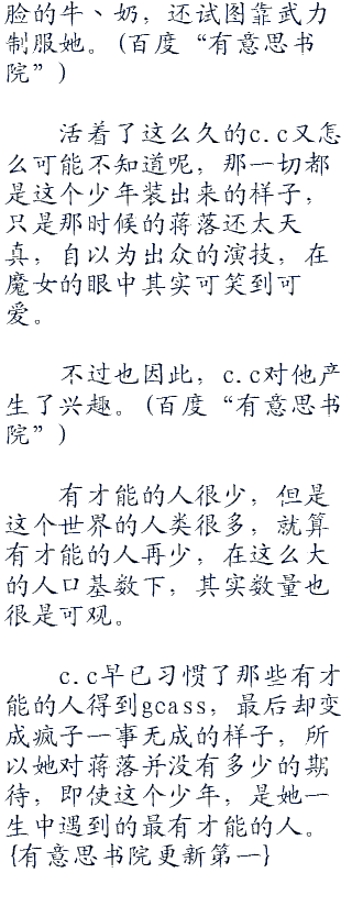 蒋落迅速的答话,要知道能让这个魔女给你讲故事可是非常难得的事,大多数的人她可都是完全不搭理的,从这点来说,就知晓c.c对蒋落态度的不同。