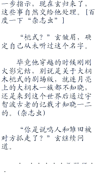 不过,即便是玄不在,她也有自己的方法,想要她束手待毙,就太小瞧这位日向的公主姬了。