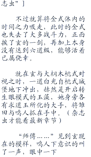 轰鸣声渐小,突然间,一道丝毫不逊色于玄的查克拉气息冲天而起,城堡的碎落处也同起变化,重力好像受到了某种不正常的改变,碎石往上漂浮。
