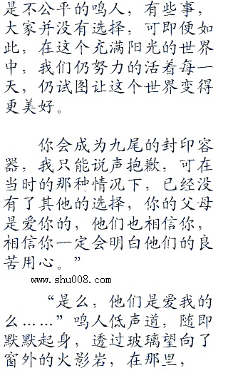 见到鸣人脸上浮现着急的模样,他和蔼的摆摆手道:“不用着急,鸣人你是一个好孩子,我相信着你,你不说当然有你不说的理由,不过我希望你记住你刚才说的话,无论什么时候,木叶都是你的家。”