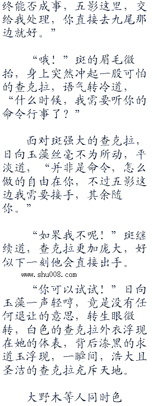 大野木的脸上同样无比难看,悬浮在半空沉声道,“竟会是这种发展,真是出乎老夫的预料,不过就算如此,我们五影也要在此阻止你,虽然目睹过你刚刚的实力,我们的胜率渺茫,可有些事不得不做,这是我们身为五影的责任!”
