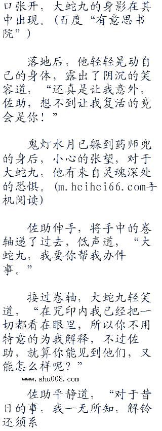 “什么?”水月和重吾同时一惊,特别是鬼灯水月,已经一步跳起,大叫道,“佐助,那家伙不是已经被你杀了么,你在说什么胡话,而且,我们只要有了这份东西,就完全能自己单干,为什么”