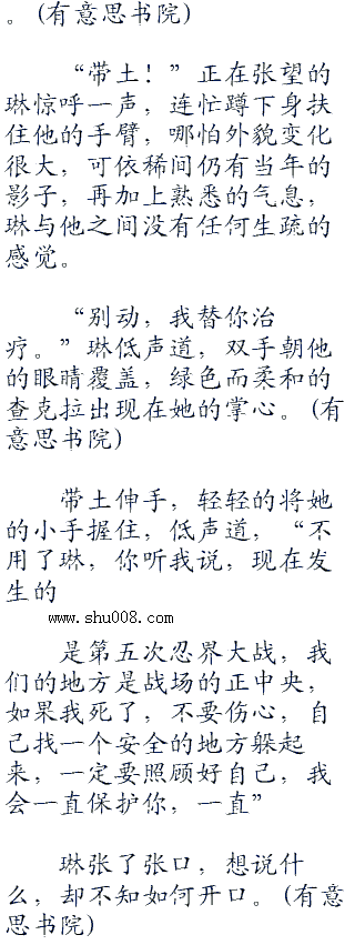 “你这是怎么了带土?”琳皱眉道,用力推开他,茫然的起身四顾,在她的眼前,是陌生的战场,十几年的沉睡,让她已完全和这个世界脱节。
