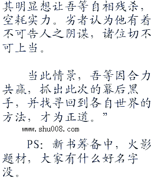 在这里,你们可以使用任何手段,胜者为王,强者为尊,当只剩最后一个人或势力时,你们将会获得大宇宙意志的认同,正式加冕为神!