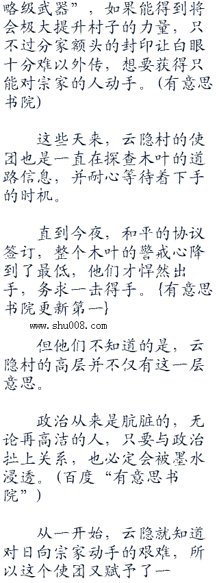 隐约间,他好像有一些印象,好像前世的时候日向宁次提到过这回事,后来云隐村借此事威胁,直接导致了日向宁次的父亲日向日差死亡。