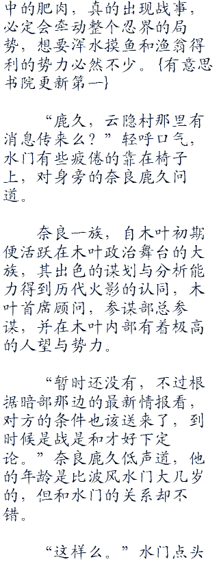 “我知道。”波风水门脸色阴沉的点头,他在大多数时候一向温文有礼,鸣人还是首次见到他这种模样。