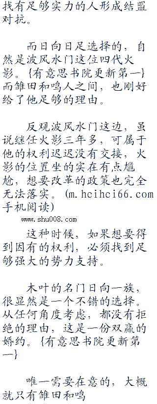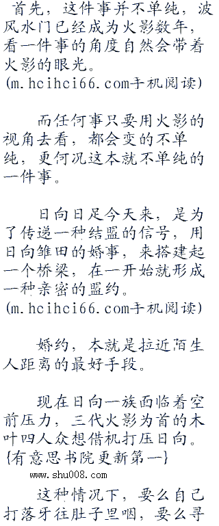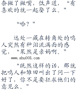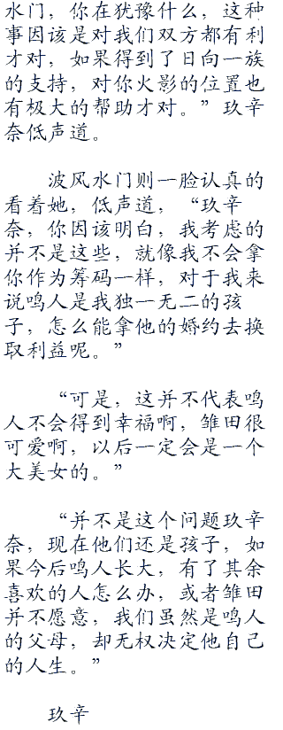 “鸣人君订婚是什么意思?”一道怯怯的声音在鸣人身旁响起,转头看着一脸茫然的雏田,鸣人捂住了自己的额头。