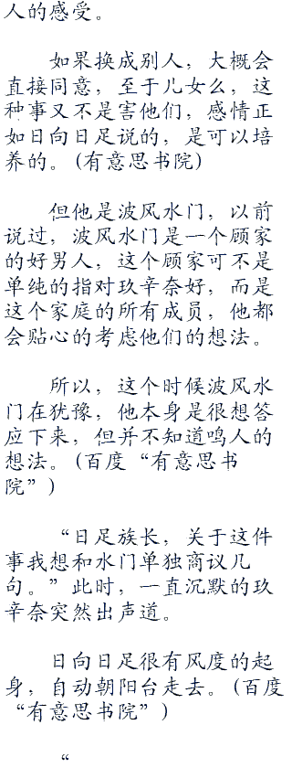 日向日足显然早就预料过这种回答,平静道,“没事,只是订婚而已,以后的路还长,可以让他们从小培养感情,只要我们今天把婚事订下,剩下的都是旁枝末节。”