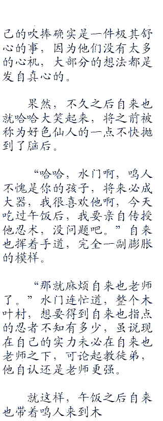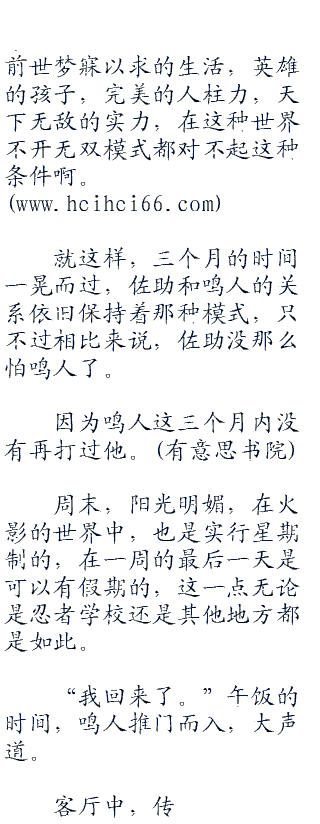 非但如此,还要在一旁陪着笑脸,免得鸣人一言不合再打自己一顿。毕竟这家伙可是连尼桑都打不过的怪物,还是火影的儿子,在学校打人这种事完全没有任何压力。
