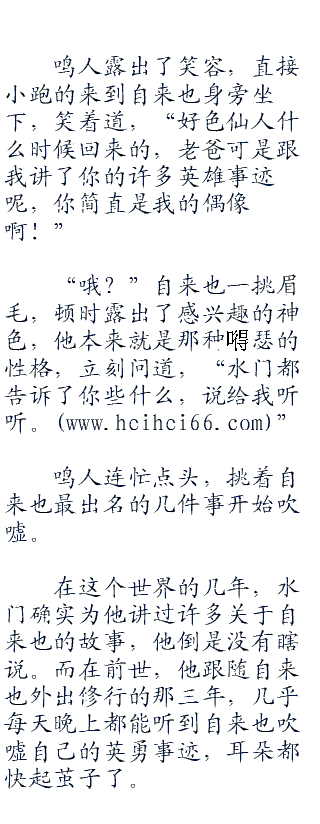 鸣人爽朗的笑着,手臂不停的拍在佐助的肩膀上,显的很是开心。