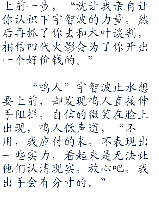 “恩”这个变化出乎了所有人的预料,顿时宇智波的族人下意识的戒备。
