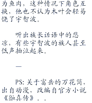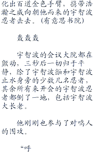 随着宇智波富岳的话,鸣人的内心中传来一声怒吼,紧接着九尾的声音继续传来。()