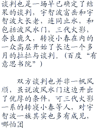 “额对了,差点忘了正事,三天后开始正式谈判,族长大叔可不要忘记啊。”鸣人突然转身说了这句话,随后再次转身头也不回的离开。